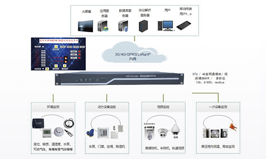 站端監(jiān)控包括各種探測傳感器、數(shù)據(jù)采集單元、無線無源測溫系統(tǒng)、局放在線監(jiān)測系統(tǒng)、門禁系統(tǒng)幾個(gè)部分。站端監(jiān)控安裝在配電室實(shí)時(shí)監(jiān)測現(xiàn)場實(shí)際環(huán)境狀態(tài)及各項(xiàng)參數(shù)如視頻明火、煙霧、人員非法入侵動(dòng)物入侵、環(huán)境溫濕度、門禁、空調(diào)狀態(tài)、臭氣含量、開關(guān)柜母排溫度、開關(guān)柜內(nèi)局放等讀取二次電力設(shè)備監(jiān)控系統(tǒng)電量參數(shù)及報(bào)警事件信息通過通信網(wǎng)絡(luò)將現(xiàn)場各項(xiàng)參數(shù)及狀態(tài)上傳···